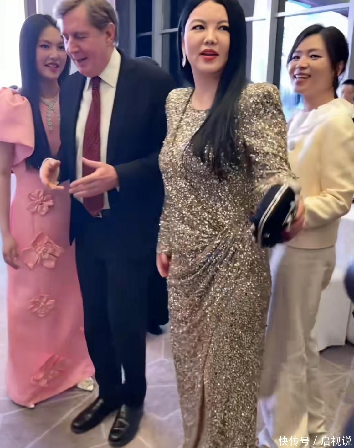 3. 12月16日,李湘分享了出席哈尔滨世界旅游经济论坛晚宴的现场照,身着一袭闪耀夺目的亮片长裙亮相,红唇浓烈、妆容精致,无疑是全场最抢眼的存在。