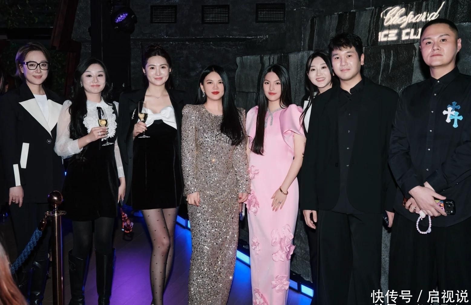 10. 看似简约的粉色裙装实则价值不菲,单是颈部佩戴的钻石项链就足以彰显分量,手中拎着的满钻手包、脚上镶嵌水晶的高跟鞋,每一处细节都在诉说“富贵”二字。